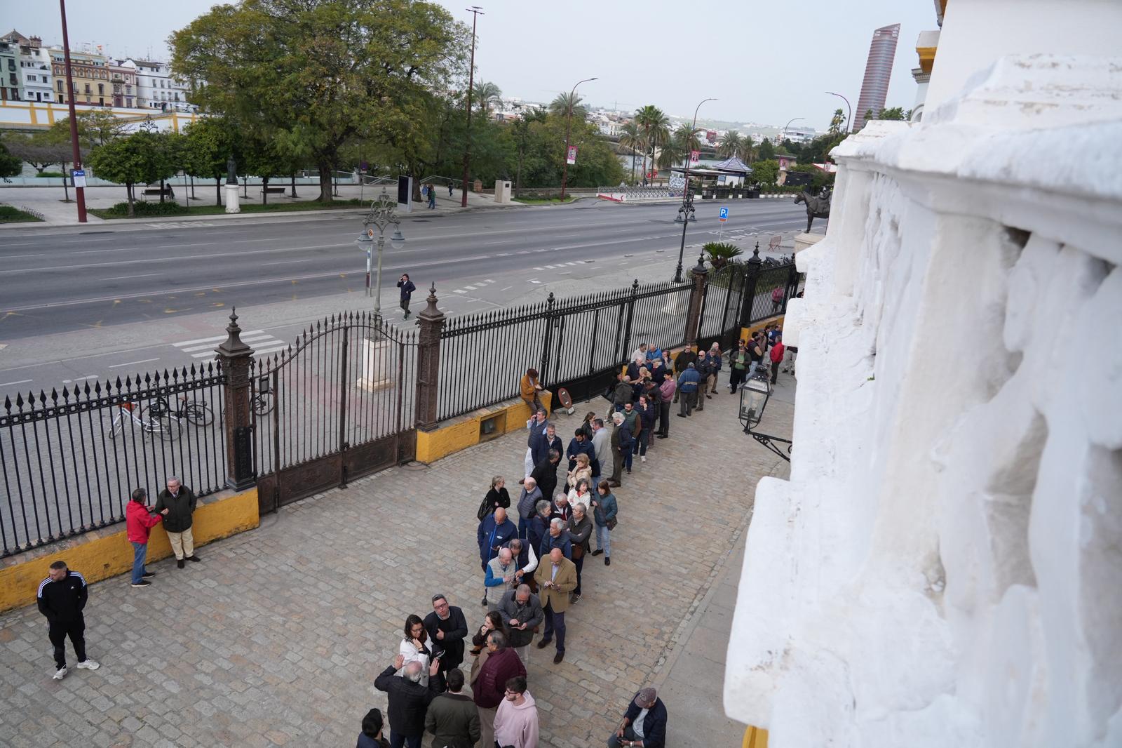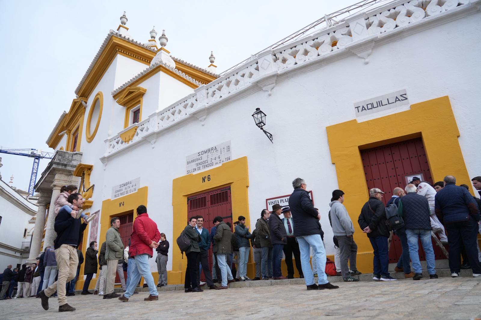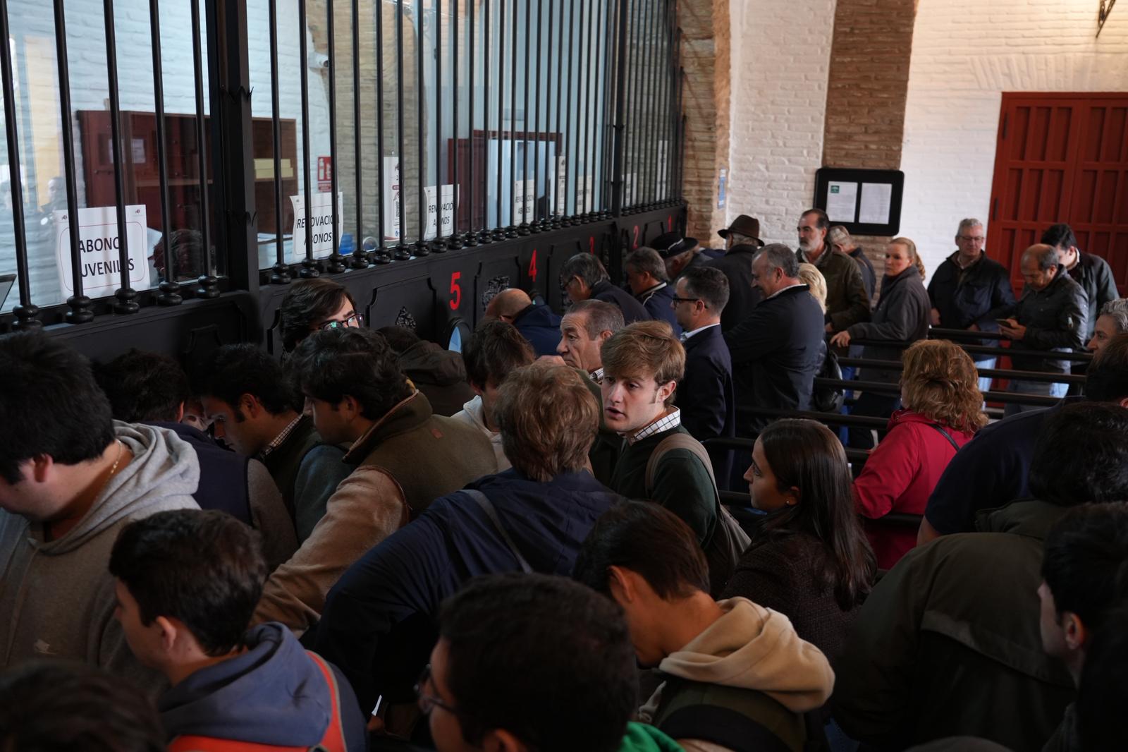 Las taquillas de la Plaza de Toros de Sevilla han abierto sus puertas esta mañana con máxima expectación y largas colas para la renovación y venta de nuevos abonos, en la nueva etapa de Lances de Futuro al frente de la Real Maestranza de Caballería de Sevilla.