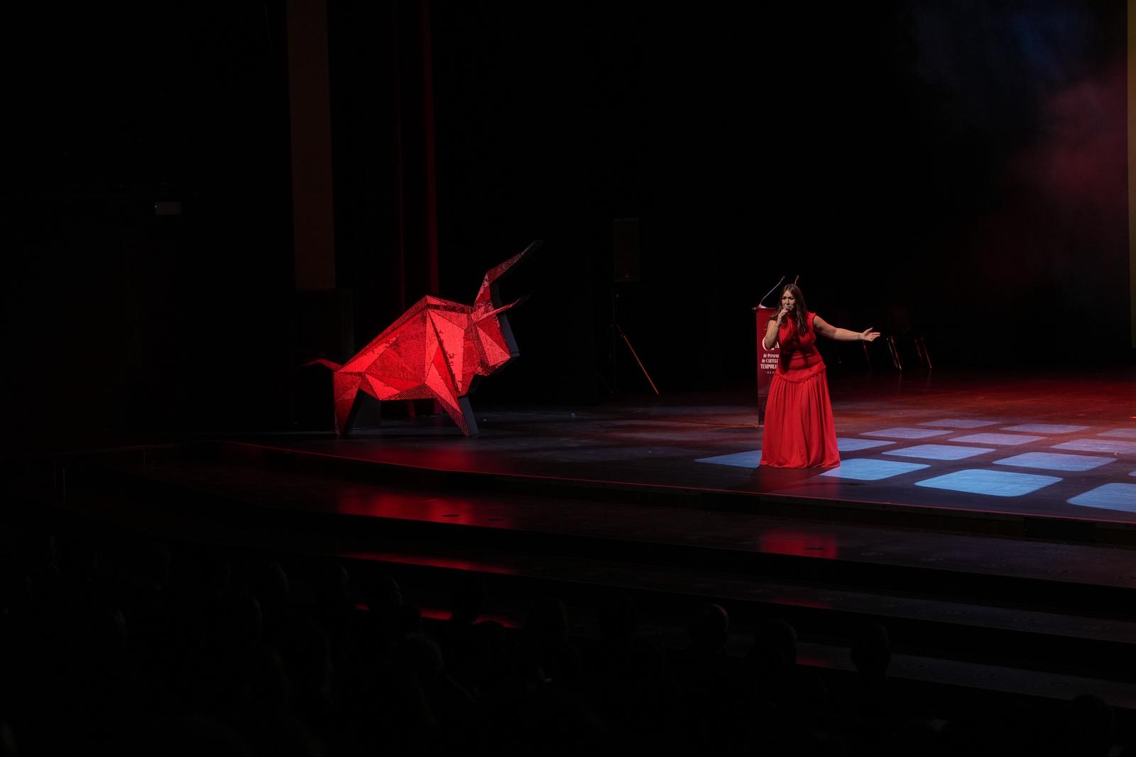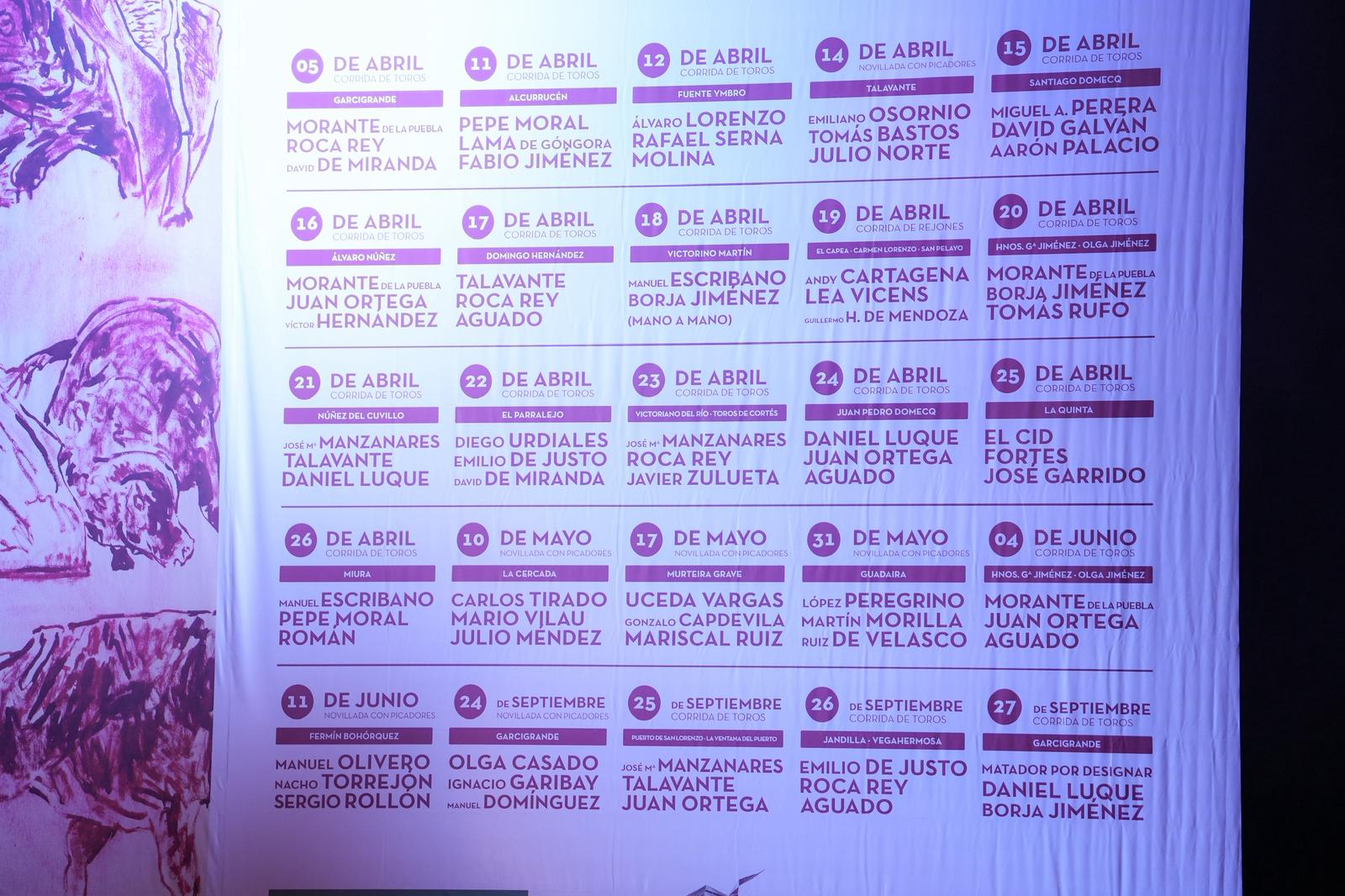 El momento más esperado ha sido la revelación de los carteles de la temporada, un cartel gigante se ha desplegado sobre el escenario con todos los festejos de la temporada, con una pintura de Georg Dokoupil, de la que Morante de la Puebla es el protagonista absoluto.