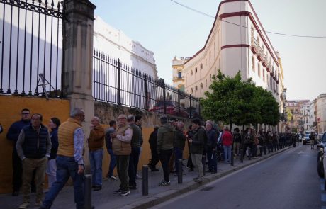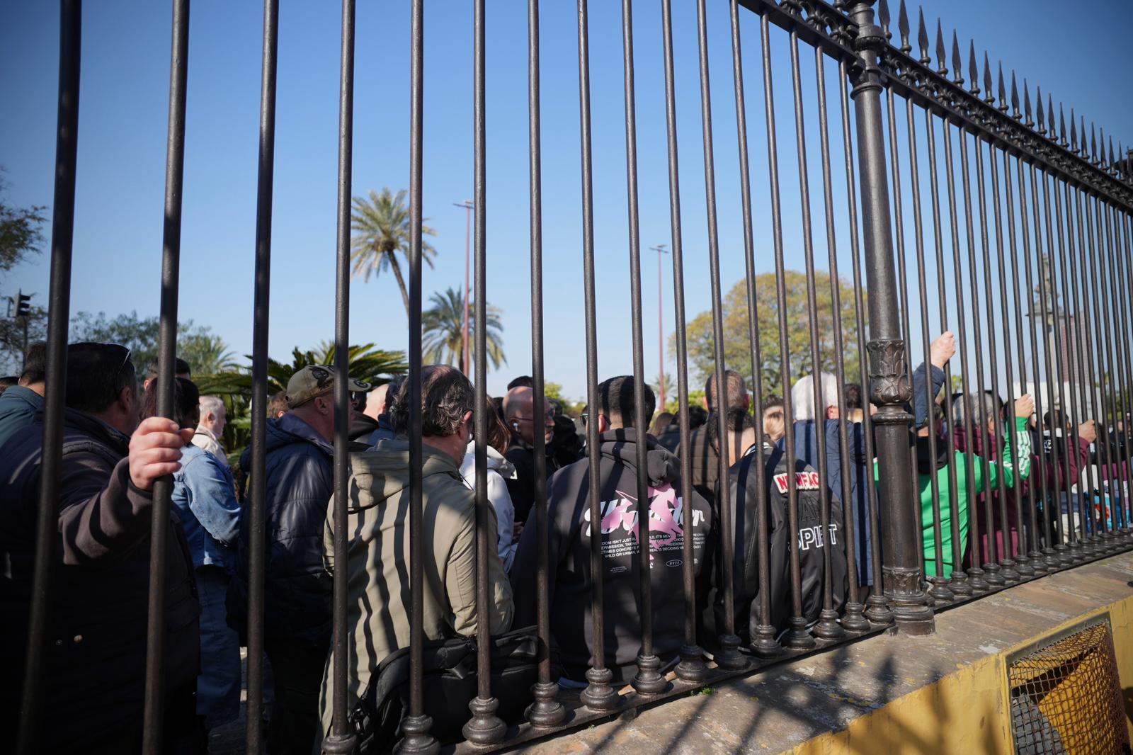 La cola, que se extiende por el Paseo de Colón y la calle Antonia Díaz hasta llegar a la calle Adriano, refleja la gran expectación generada ante la primera temporada de la empresa Lances de Futuro al frente de la plaza de toros de la Maestranza.