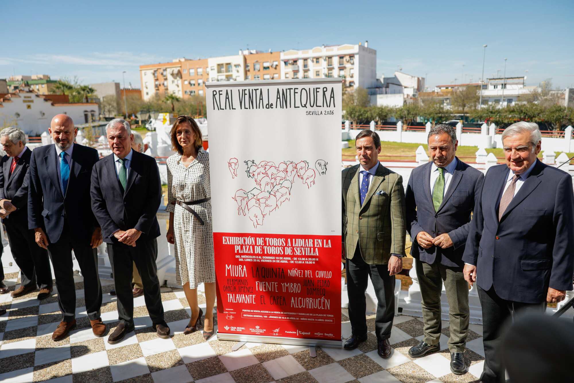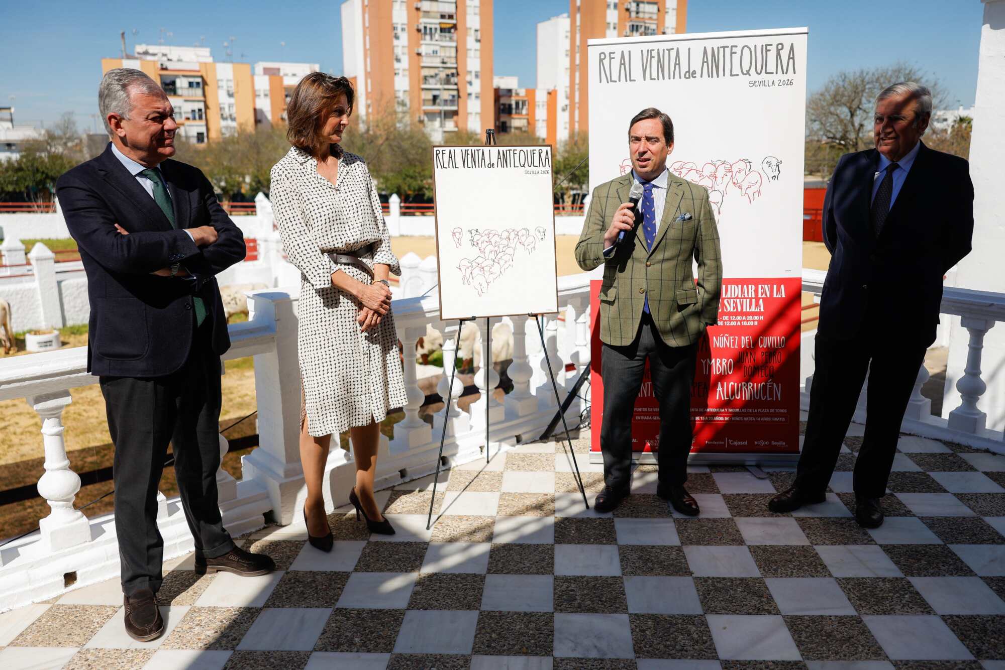 El acto ha contado con la presencia del empresario de la plaza de toros de la Real Maestranza de Caballería de Sevilla, José María Garzón; también la artista sevillana Beatriz Zamora, creadora del cartel; Daniel de la Fuente, propietario de la Real Venta de Antequera; y el alcalde de Sevilla, José Luis Sanz, encargado de cerrar el acto.