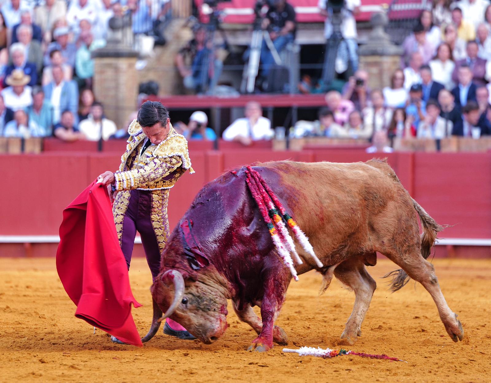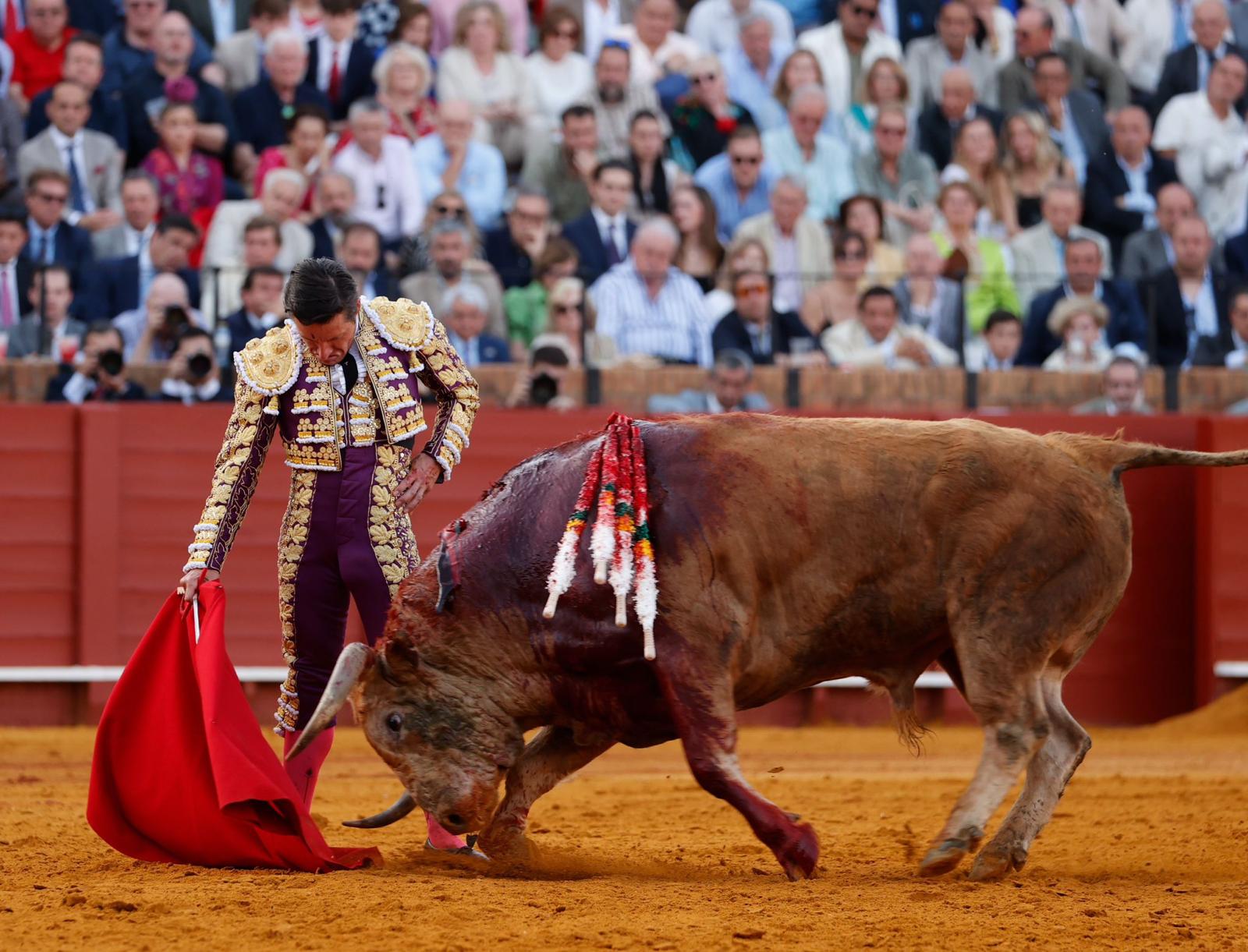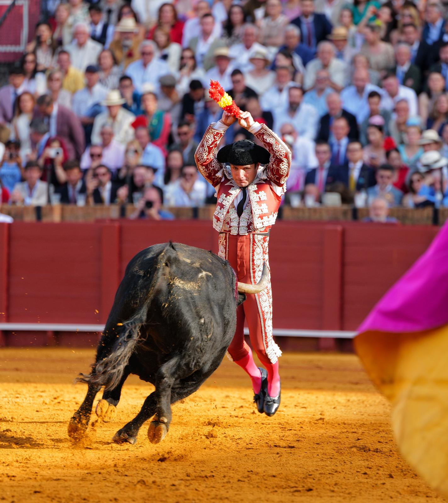 Tarde rotunda de David de Miranda en la duodécima del abono de la Feria de Sevilla tras cortar tres orejas y abrir la Puerta del Príncipe, la segunda en su carrera. Un festejo donde se lidió una notable corrida de El Parralejo, con un tercer toro de nombre ‘Secretario’, que fue premiado con la vuelta al ruedo.