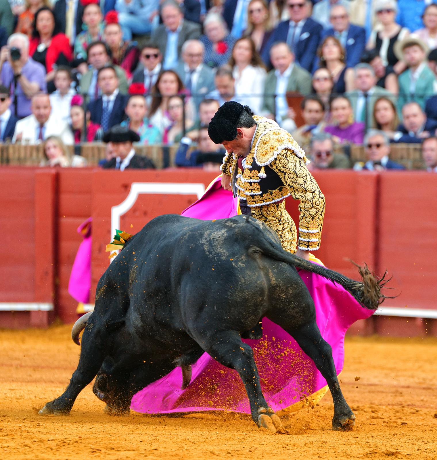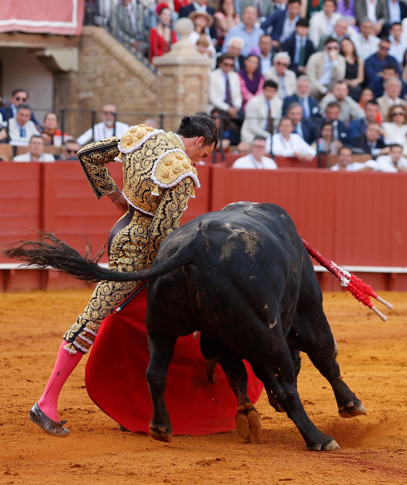 El run run de la Puerta del Príncipe ya corría por los tendidos cuando salió el sexto de la tarde. El burraco sexto le dio un susto a De Miranda cuando lo recibió con el capote. Se le coló por dentro. Con la muleta De Miranda comenzó por estatuarios. Un toro que no tuvo mucha entrega, pero que entendió muy bien el onubense. Lo fue metiendo en la muleta hasta pegarla varios muletazos por el derecho. Subió la faena al natural. A pies juntos, dándole el tiempo al animal. Faena inteligente y de entrega. Las manoletinas del fina encendieron al público. Estocada. Oreja y petición de la segunda.